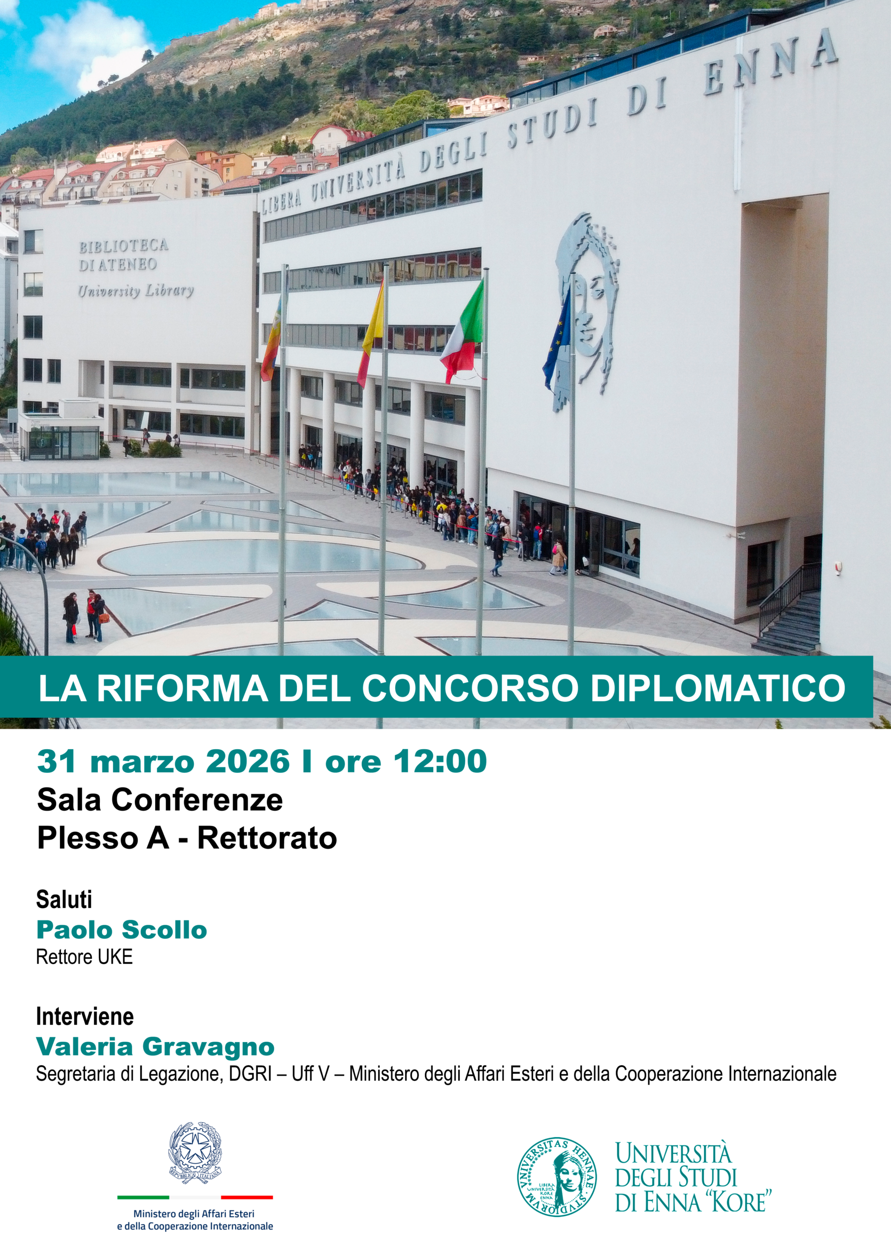 L’Università degli Studi di Enna “Kore” ospiterà un incontro dedicato alla riforma del concorso diplomatico, un tema centrale per l’accesso alla carriera diplomatica e per la formazione delle nuove generazioni impegnate nelle relazioni internazionali.